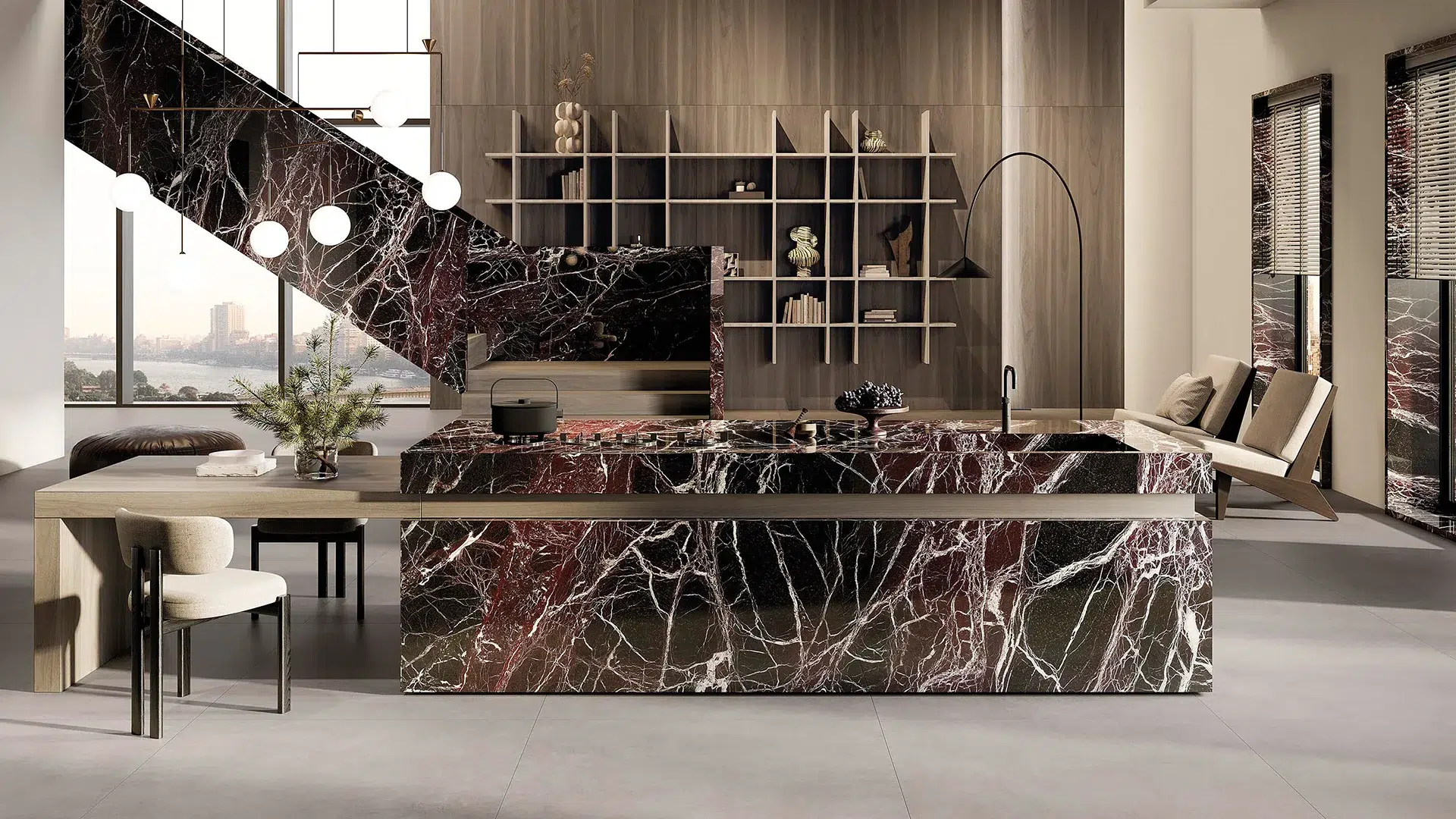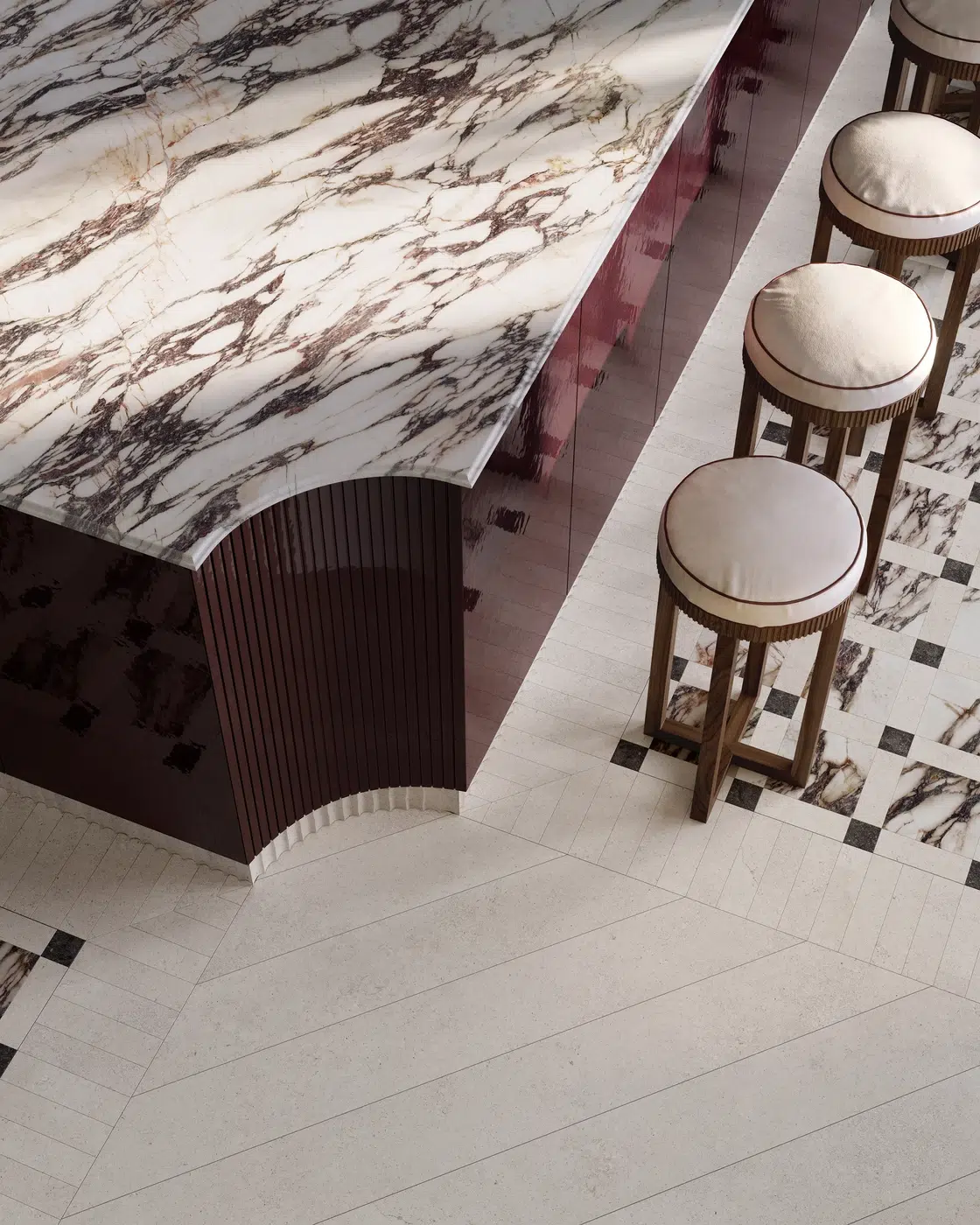 Unlike natural stone or quartz, porcelain is not a through body product. The color and pattern is printed on the surface and does not go through the body of the slab, limiting the edge styles compared to quartz and natural stone.